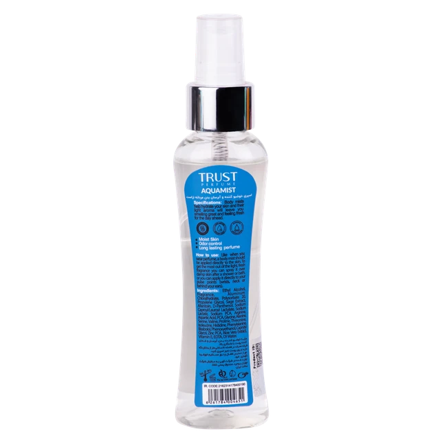 بادی میست مردانه تراست مدل Aquamist با گروه بویایی آروماتیک، تند تازه، سبز و چوبی در اختیار شما قرار میگیرد. با نتهای اولیه از صنوبر، سرو و نعنا هندی، این بادی میست با یک شروع جذاب به شما خوشآمد میگوید.