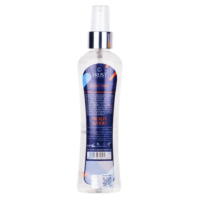 بادی میست مردانه تراست مدل Prada Wood، بویی مرموز، عمیق و اصیل دارد که حس منحصربهفرد بودن را القا میکند. رایحه ابتدایی آن پر از تازگی مرکباتی مثل ترنج، لیمو و پرتقال است که با عطر زنجبیل و هل تلفیق شده است. در نهایت عطر چوبهای سفید و عنبر از خودش به جا میگذارد.