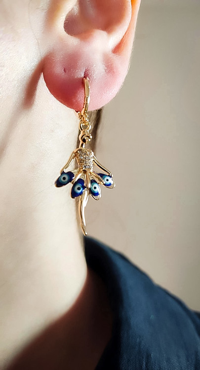 گوشواره زنانه استیل برند وای اس ایکس طرح چشم نظر رنگ ثابت