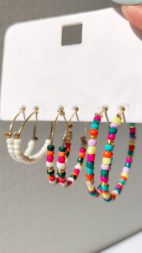 پک سه جفتی گوشوارههای بارکددار برند fashion jewellery با مهرهای رنگی بسیار مناسب برای استفاده روزانه