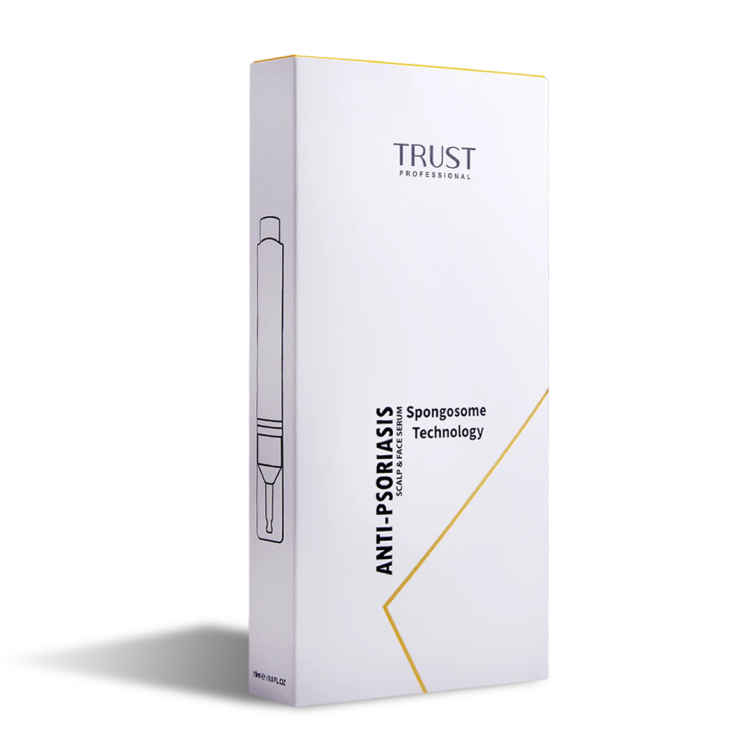 پسوریازیس نوعی بیماری خودایمنی پوستی است که راشها یا پلاکهای پوستی و ضایعاتی را در پوست سر، صورت، زانوها، بازوها و قسمت بالا تنه ایجاد کرده و به عنوان یک بیماری مزمن و بلند مدت شناخته میشود. این پلاکها دردناک هستند و با داشتن یک سیکل مشخص به مدت چند هفته تا چند ماه بروز پیدا کرده و پلاکهایی که رنگ متغیری دارند معمولا به صورت پوستههای صورتی تا قرمز بروز پیدا میکنند. این بیماری با علایم مختلفی مثل خشکی پوست با خونریزی، خارش و سوزش همراه است. پسوریازیس نواحی مختلفی از بدن را درگیر میکند که یکی از مهمترین قسمتها پوست سر و صورت است. شیوع پسوریازیس در پوست سر و صورت منجر به خشکی پوست شده و در نهایت باعث آسیب پوست و شکنندگی و ریزش موها میشود. بنابراین برای کنترل علایم پسوریازیس میبایست از محصولات مراقبتی مناسب استفاده کرد. سرم بهبود دهنده پسوریازیس تراست با بهرهگیری از تکنولوژی اسپانجوزوم به طور موثری به نفوذ و رهاسازی پیوسته ترکیبات لایهبردار و بهبود دهنده ساخت سلولهای جدید در پوست سر و صورت کمک کرده و با بهبود پلاکهای پسوریازیس و کاهش علایم بیماری، سلامت پوست را حفظ میکند. این محصول با دارا بودن ترکیبات موثره آبرسان و ضد التهاب، از خشکی پوست سر و صورت جلوگیری کرده و با مهار واسطههای التهابی، از پیشرفت عارضه جلوگیری کرده و کمک شایانی به بهبود ضایعات پسوریازیس میکند.