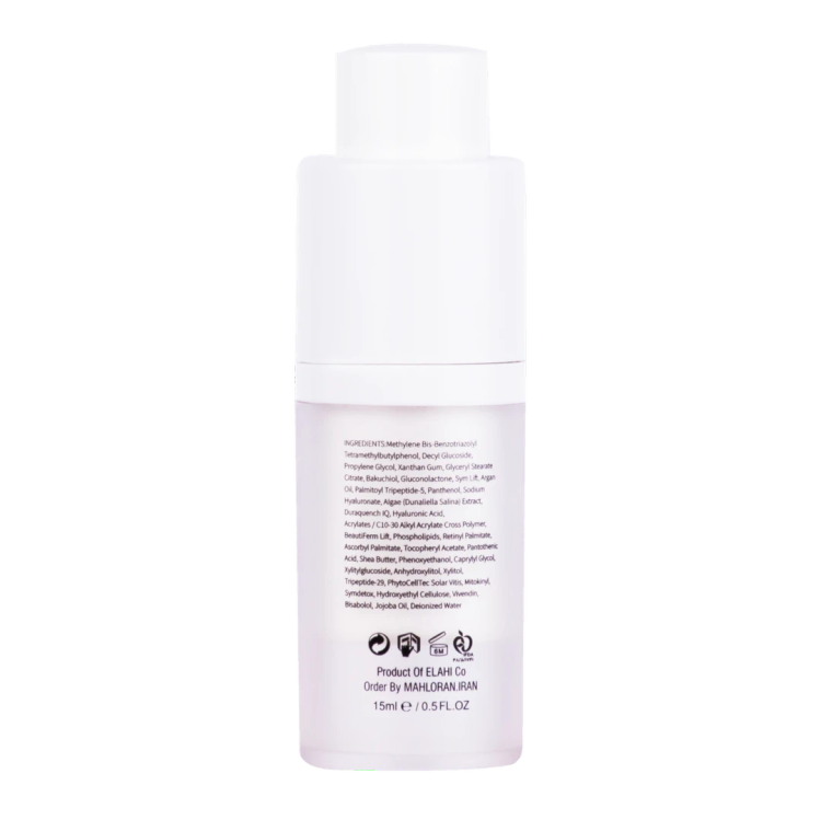 - حاوی ترکیبات پپتیدی سفتکننده و تغذیهکننده سلولهای پوستی پالمیتویل تری پپتاید-۵، عصاره مخمر هیدرولیز شده، تریپپتاید-۲۹، که به پرکردن چین و چروکها و رفع شلشدگی و افتادگی پوست کمک میکنند.