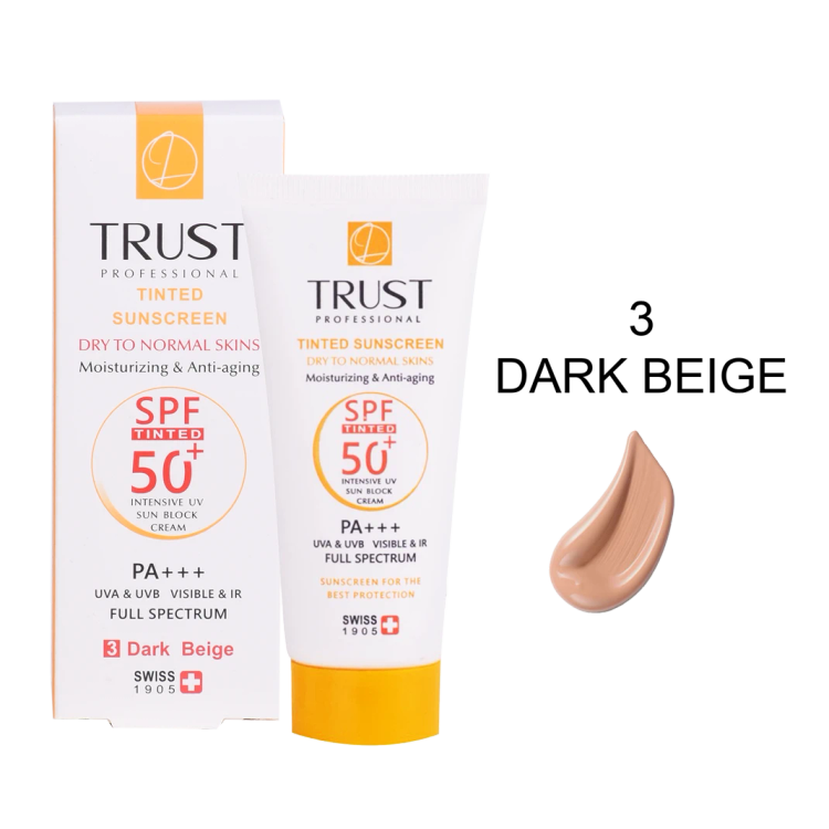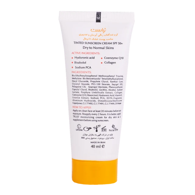 کرم ضد آفتاب رنگی و ضد پیری spf 50 برند تراست (پوست خشک تا نرمال) (2024)در سه رنگ جذاب