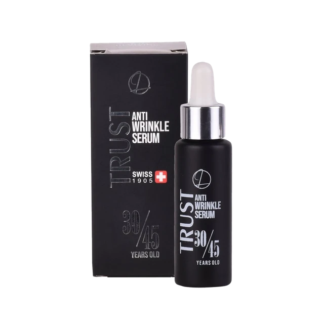 سرم ضدچروک صورت تراست (مناسب 30 تا 45 سال)، با داشتن ترکیبات فعال آبرسان و پپتیدهای تقویتکننده پوست، باعث تحریک تولید کلاژن در پوست و آبرسانی آن میشود. ترکیب هیالورونیک اسید به صورت همافزا با سدیم پی سی ای و زایلیتول، علاوه بر آبرسانی، به رفع چینوچروکهای پوستی کمک میکند. ترکیب گلوکونولاکتون خاصیت لایهبرداری داشته و ضمن از بین بردن سلولهای مرده پوست آن را آبرسانی نیز میکند. این سرم از آسیب رادیکالهای آزاد ناشی از پرتوهای UV به پوست جلوگیری کرده و از بروز چینوچروک روی پوست پیشگیری میکند.