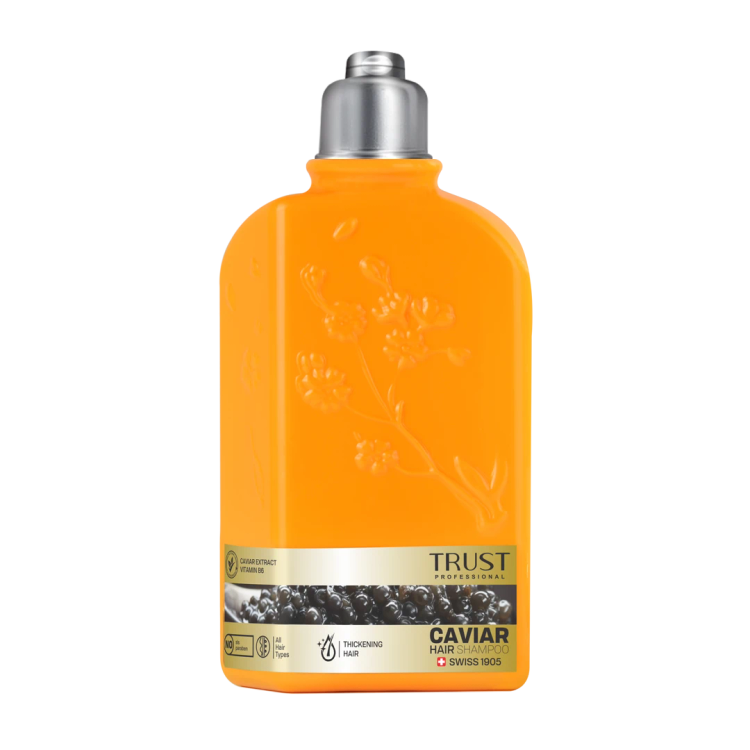 شامپو سر خاویار و ویتامین B6 تراست، با داشتن عصاره خاویار و رزماری، موجب تقویت تارهای مو و افزایش رشد آنها میشود. همچنین این محصول فاقد پارابن و سدیم لوریل سولفات (SLS) بوده و از آسیب به تارهای مو پیشگیری میکند. با استفاده از این شامپو میتوانید تارهای موی خود را ضخیم کرده و حجم آنها را افزایش دهید.