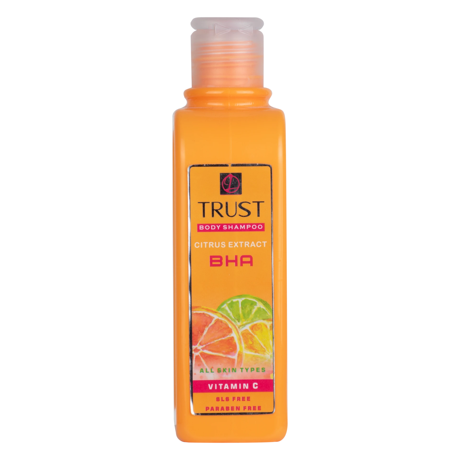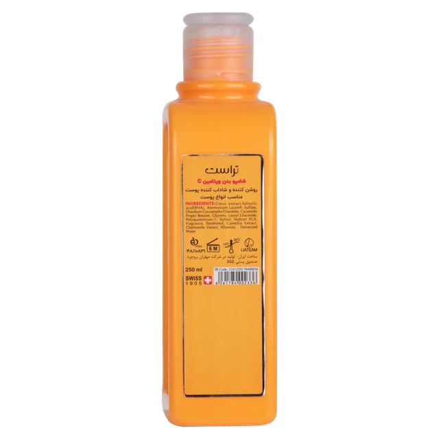 شامپو بدن ویتامین سی تراست، حاوی عصاره مرکبات و ویتامین C است که ضمن آبرسانی باعث کوچک شدن منافذ پوست و تقویت و درخشان شدن آن میشود. BHA موجود در این شامپو بدن، پوستهای مستعد جوش و آکنه را پاکسازی میکند. در نتیجه، پوست روشن و جوان میشود.