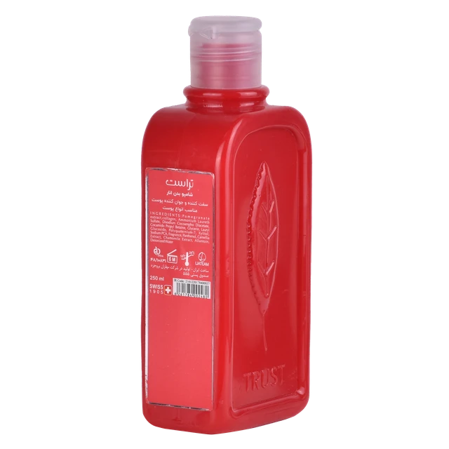 شامپو بدن انار تراست، با دارا بودن عصاره انار در ترکیباتش، از پوست در برابر پرتوهای UV خورشید مراقبت کرده و ساختار آن را حفظ میکند. وجود کلاژن در این محصول، باعث جوانشدن پوست و افزایش استحکام و سفت شدن آن میشود.